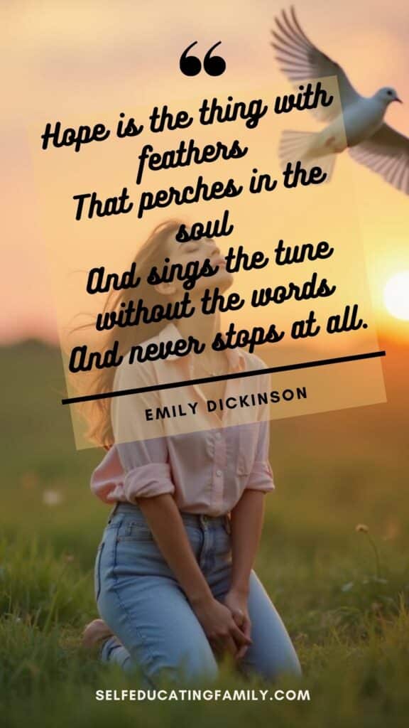 Now, if you’re looking for longer copywork, then see if you think this is her best poem. It’s the full poem of “Hope is the Thing with Feathers” written in 1861.